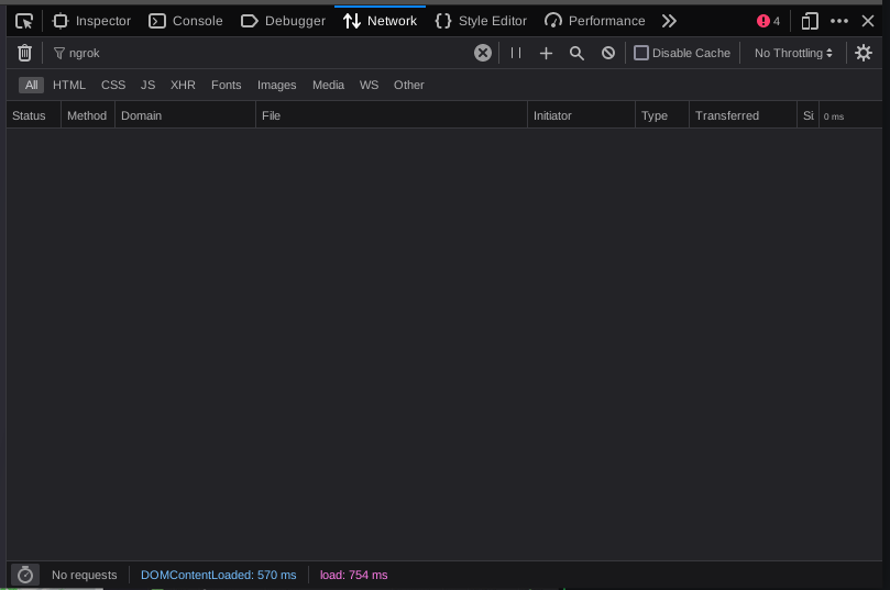 Ta-da, that was the missing piece. We can see the network connections to tehuanolabs.ngrok.app and the script in which the connections were originating from which we can reference in the Debugger tab. This also explained why we were seeing the Referrer value that we were, because the user didn't technically navigate to a new page but had generated the connection from the Local_Wx page after being Referred from the home page.